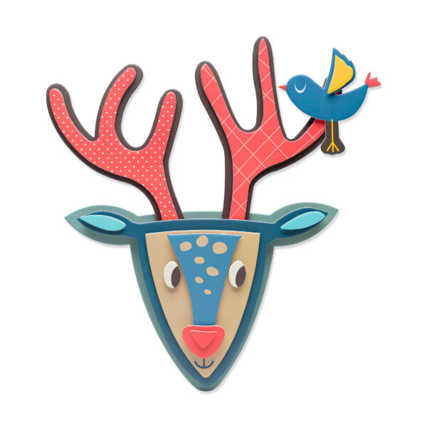 ערכת הרכבה מרהיבה ליצירת אייל על הקיר, באמצעות הדבקת שכבות של חלקי קרטון מודפסים מיוחדים.